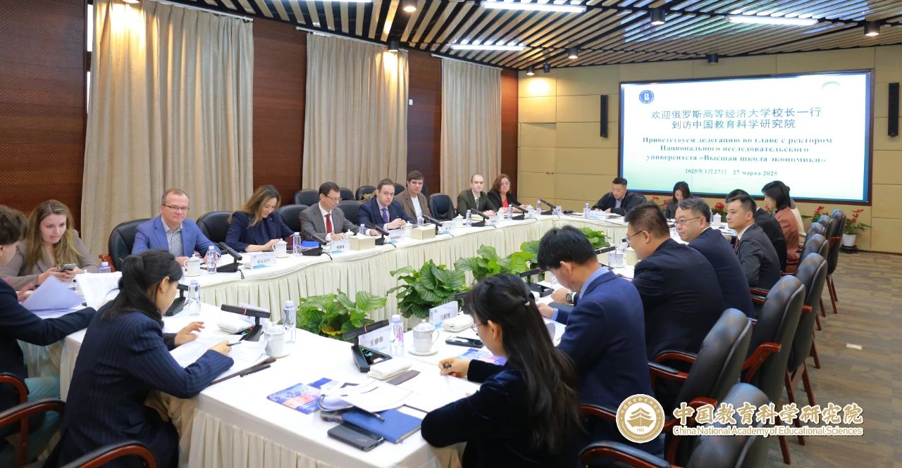 On March 27, a delegation led by Nikita Anisimov, president, National Research University Higher School of Economics (HSE), visited China National Academy of Educational Sciences (CNAES) to discuss cooperation. Li Yongzhi, president, CNAES, attended the meeting.
