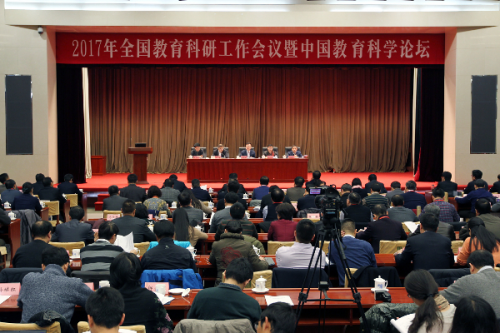 為深入貫徹落實(shí)黨的十八大、十八屆歷次全會和2017年全國教育工作會議精神,回顧總結(jié)2016年教育科研工作,研究部署2017年教育科研任務(wù),2月23—24日,2017年全國教育科研工作會議暨中國教育科學(xué)論壇在北京召開。會上印發(fā)了教育部黨組副書記、副部長沈曉明同志的書面講話,中國教育科學(xué)研究院院長田慧生同志致辭并作了全國教育科研年度工作報告,教育部綜改司司長劉自成同志介紹了2017年度教育綜合改革規(guī)劃。會議由中國教育科學(xué)研究院黨委副書記、副院長陳子季同志主持,來自全國教育科研院所、高校的專家學(xué)者和基層學(xué)校代表近400余人參加了會議。