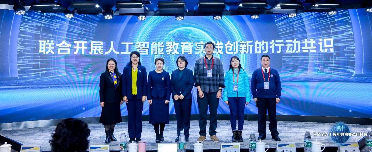 北京航空航天大學教授劉偲從圖像、音樂、語言等不同類型生成模型的研究現(xiàn)狀入手,介紹了人工智能大模型的技術發(fā)展歷程和教育賦能路徑。中國教育科學研究院數(shù)字教育研究所副所長曹培杰認為生成式人工智能使人類知識獲取方式、思維方式、教育方式發(fā)生變革,要圍繞賦能、變革、重塑三個階段,打造區(qū)別于工業(yè)時代的教育新形態(tài)。北京師范大學副教授盧宇表示,目前多模態(tài)教育數(shù)據(jù)與教育領域知識共同為生成式教育大模型提供了基礎性支撐,可對教學智能輔助,資源自動生成,以及人機協(xié)同教學構成支持。北京市海淀區(qū)委教育工委書記、區(qū)教委主任杜榮貞介紹了海淀區(qū)堅持實用化、實踐化發(fā)展,積極探索生成式人工智能與教育的融合路徑。上海市長寧區(qū)教育局局長熊秋菊分享了長寧區(qū)堅持“活力教育”的價值追求,及在智能時代實現(xiàn)教師數(shù)字素養(yǎng)提升和學生創(chuàng)新能力培養(yǎng)的實踐探索經驗。之江實驗室研究專家謝陽斌認為,教育專用大模型要以師生實際需求為導向,打破數(shù)據(jù)孤島,實現(xiàn)技術整合,形成共建共享的創(chuàng)新生態(tài)。博雅云課堂創(chuàng)始人梅也以AI數(shù)智課堂為例,介紹了生成式人工智能在數(shù)智學伴、數(shù)智助教等方面的應用。