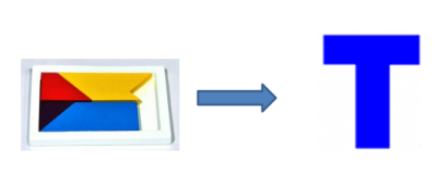 要拼擺的目標(biāo)圖形,英文字母大寫的“T”,可以直觀地理解為一橫一豎、一長一短兩個長方形。絕大多數(shù)學(xué)生看到這里,形成粗略的印象后,就會直接動手開始拼擺,期間鮮見其抬頭再觀察,這是我們對看似“簡單”的問題的直覺反應(yīng)。