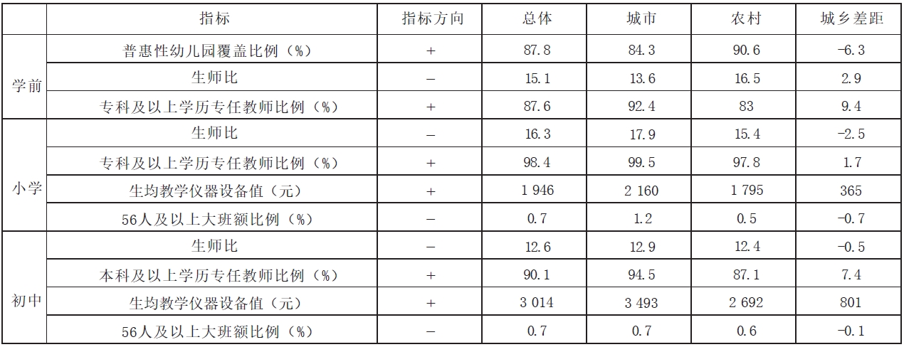 表 1 基本公共教育服務相關(guān)指標城鄉(xiāng)差異(2021 年)
